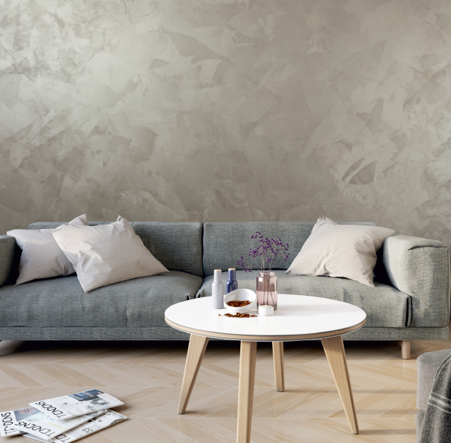 Apply a layer of Royal Silk on a dry surface using a Venetian trowel. Perform this step within small areas and in various directions to cover the entire surface. Thickness of the applied layer should not exceed 1 mm.